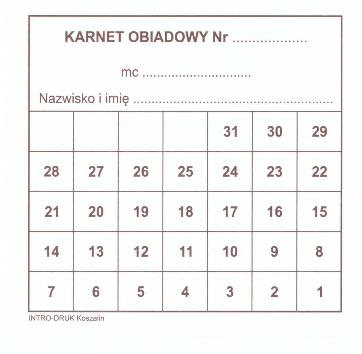 Bony obiadowe, format A6.