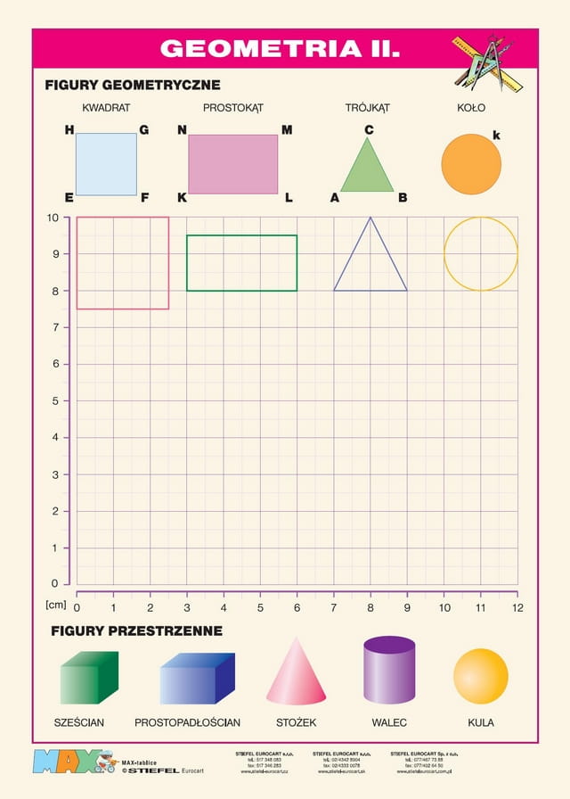 Geometria (cz.2) to plansza jednostronna w formacie 140x100cm, laminowana, oprawiona w drewniane wałki, w języku polskim.