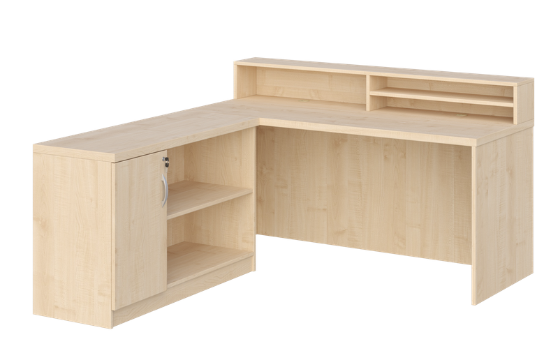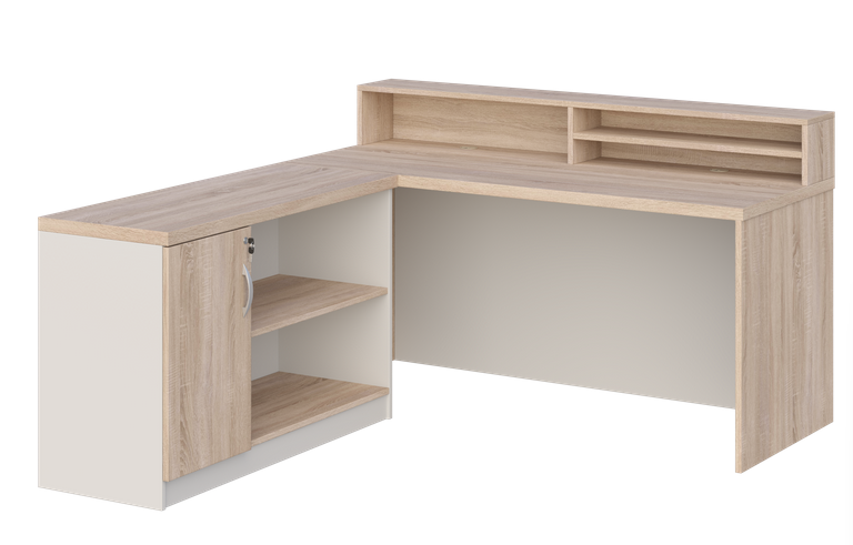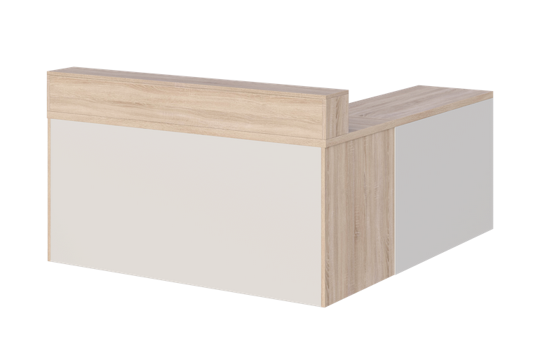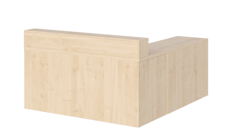- Cały przód biurka zabudowany jest płytą laminowaną gr. 18 mm, dzięki czemu biurko może mieć funkcję biurka/recepcji.