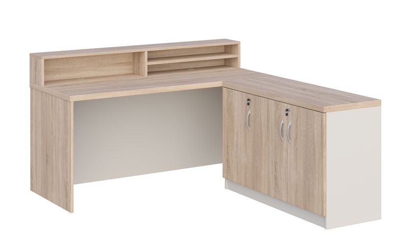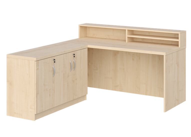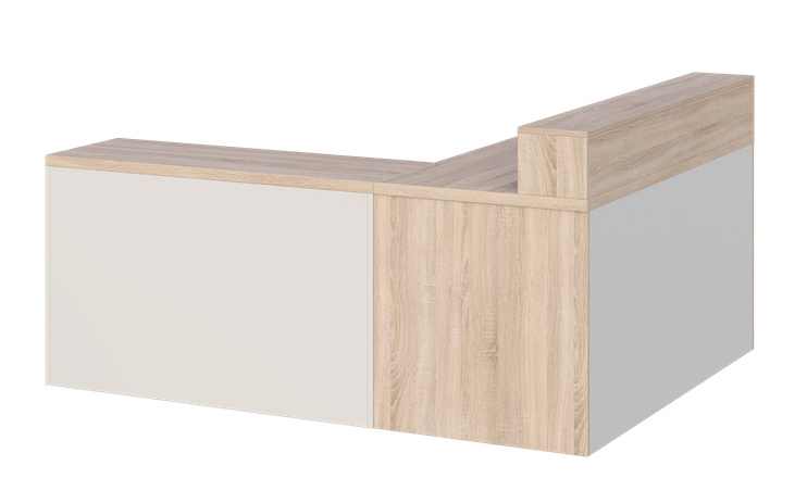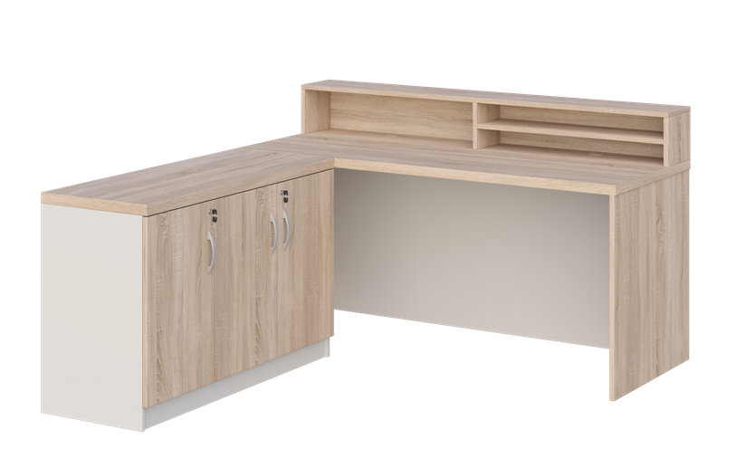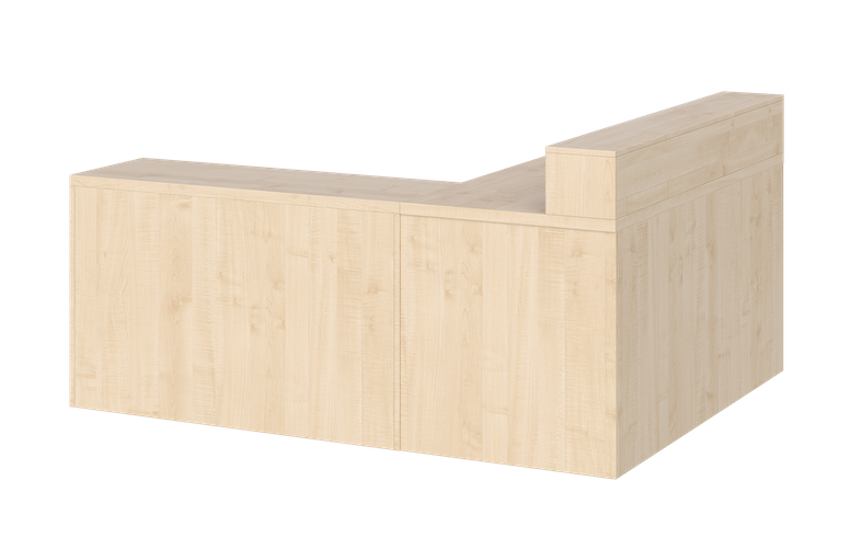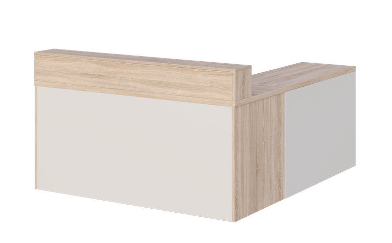 - Cały przód biurka zabudowany jest płytą laminowaną gr. 18 mm, dzięki czemu biurko może mieć funkcję biurka/recepcji.