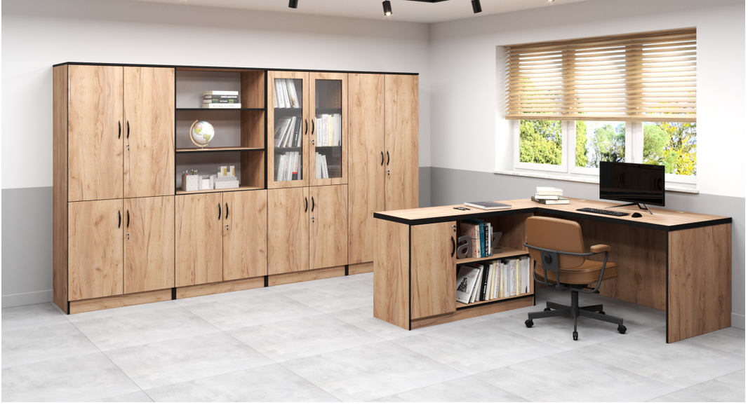 - Do zestawu można dokupić szafy z kolekcji Mazur, Kujawiak lub Bałtyk- wszystkie meble będą wykonane w tej samej kolorystyce i będą stanowiły całość wyposażenia biura.
