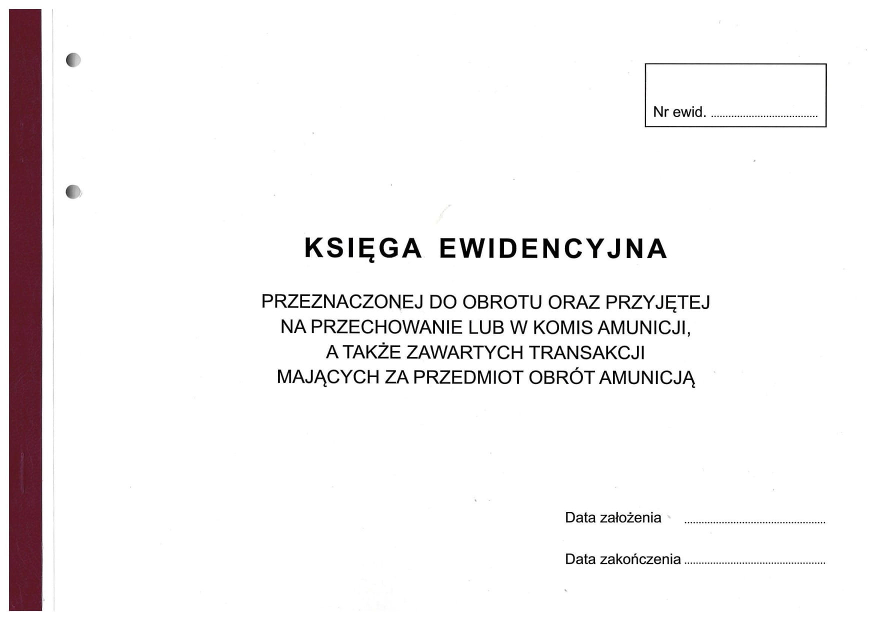 Księga Ewidencyjna przeznaczonej do obrotu oraz przyjętej na przechowywanie lub w komis amunicji, a także zawartych transakcji mających za przedmiot obrót amunicją