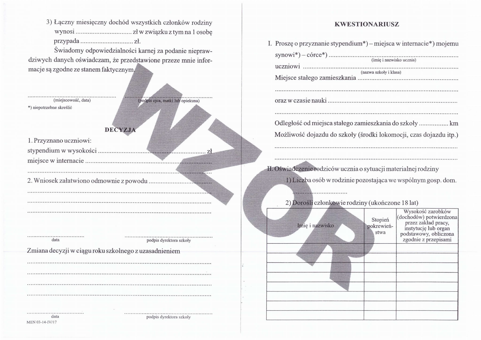 Kwestionariusz (dane o uczniu i jego rodzinie)
