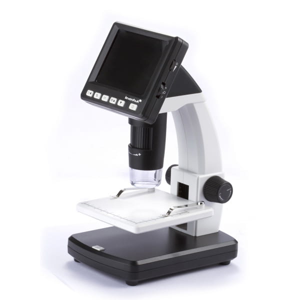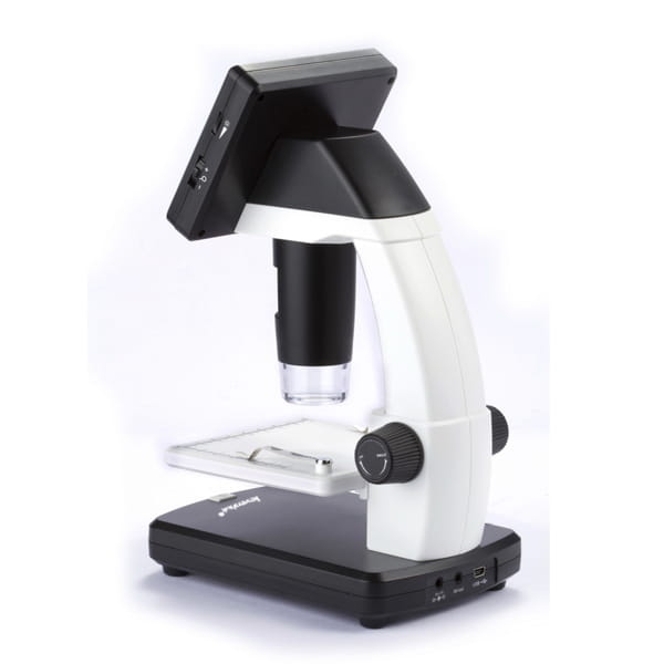 Mikroskop cyfrowy Levenhuk DTX 500 LCD z wbudowanym wyświetlaczem LCD umożliwia badanie próbek w powiększeniu od 20x do 500x i zapisywanie wyników w formie zdjęcia lub filmu wideo na karcie microSD. 8 wbudowanych diod LED równomiernie oświetla obserwowaną powierzchnię i zapewnia niewielkie zużycie energii. System oświetlenia posiada również funkcję regulacji jasności.