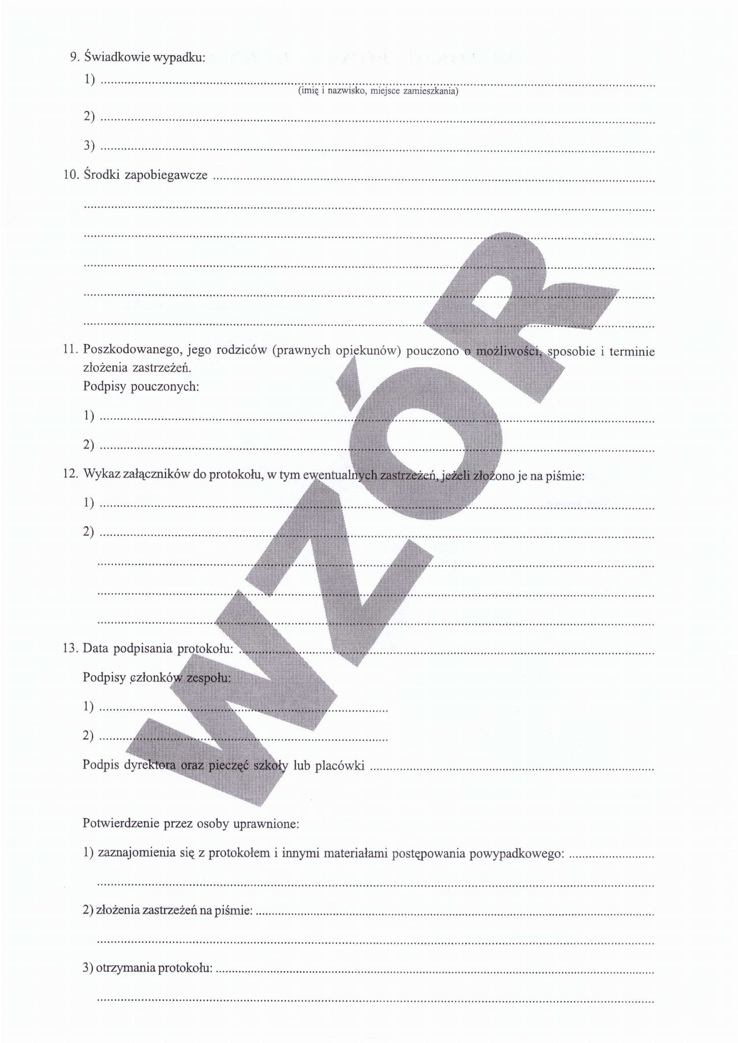 Protokół ustalenia okoliczności i przyczyn wypadku