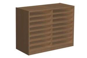 Szafka posiadająca 16 niskich skrytek w 2 kolumnach.