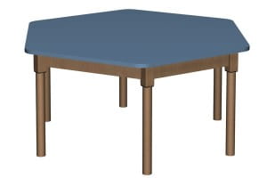 Stół szkolno-przedszkolny sześciokątny, noga drewniana