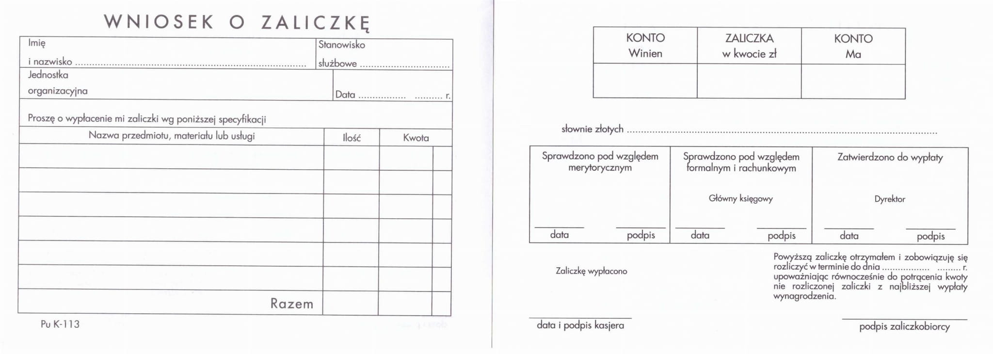 Wniosek o zaliczkę A6, offset