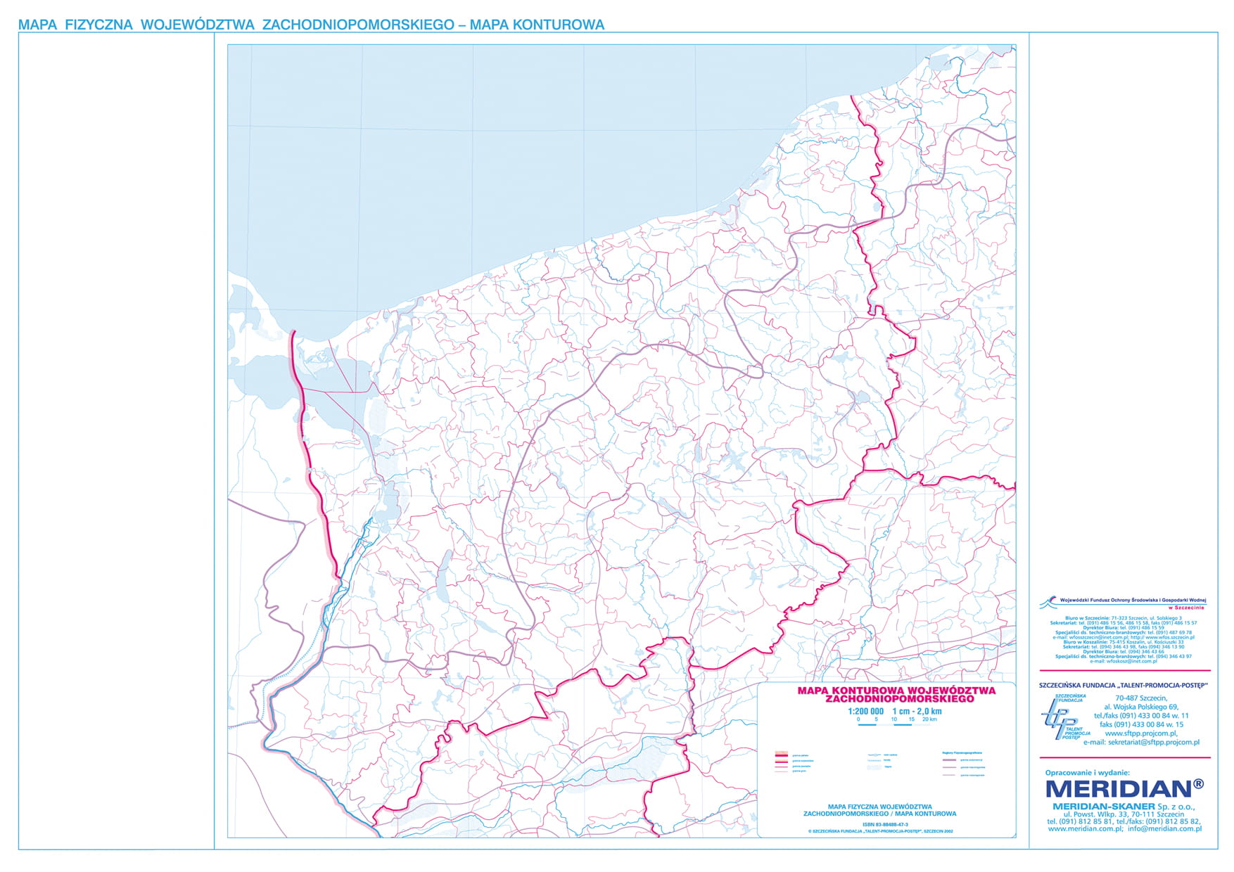 Zachodniopomorskie - mapa fizyczna i konturowa