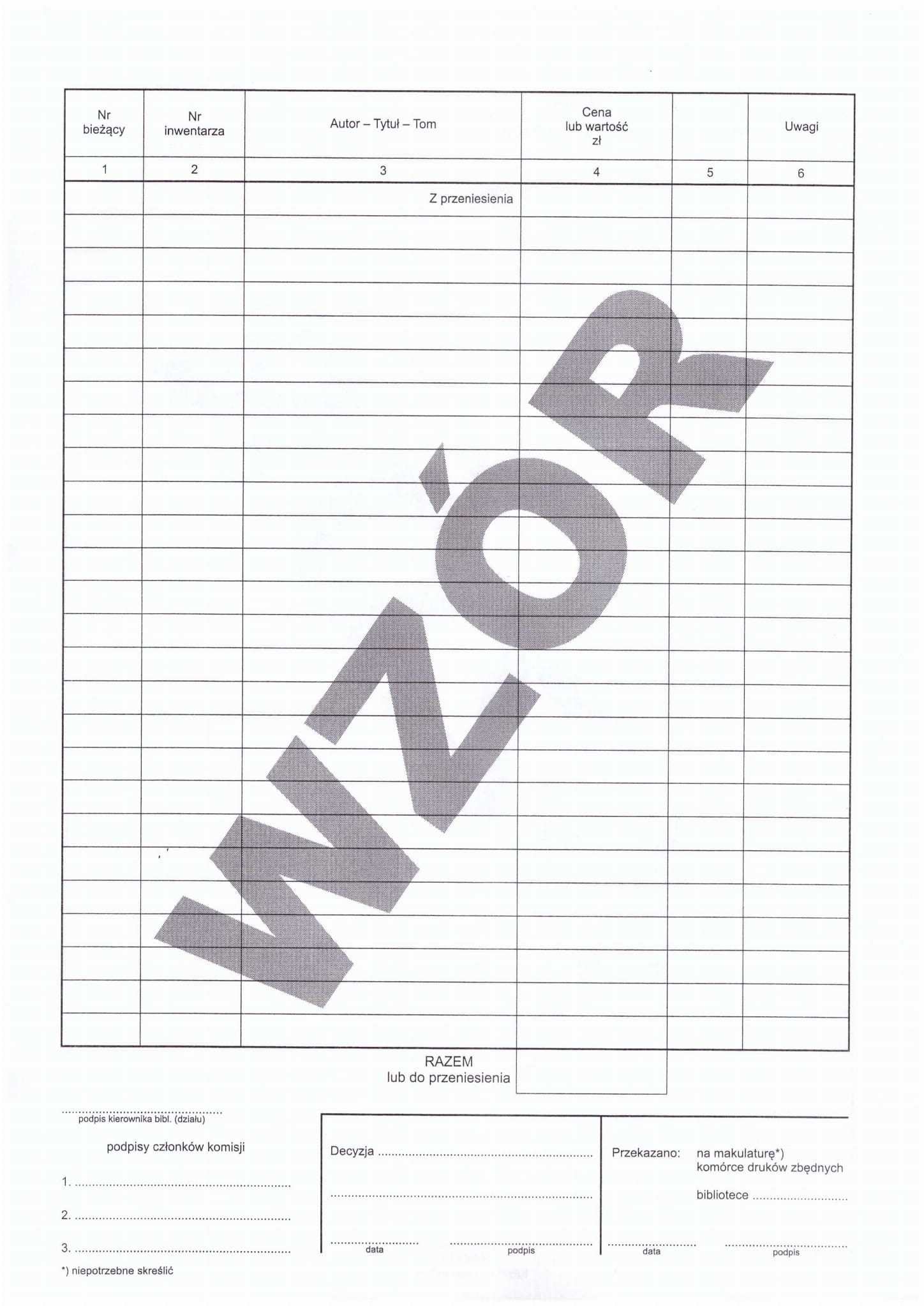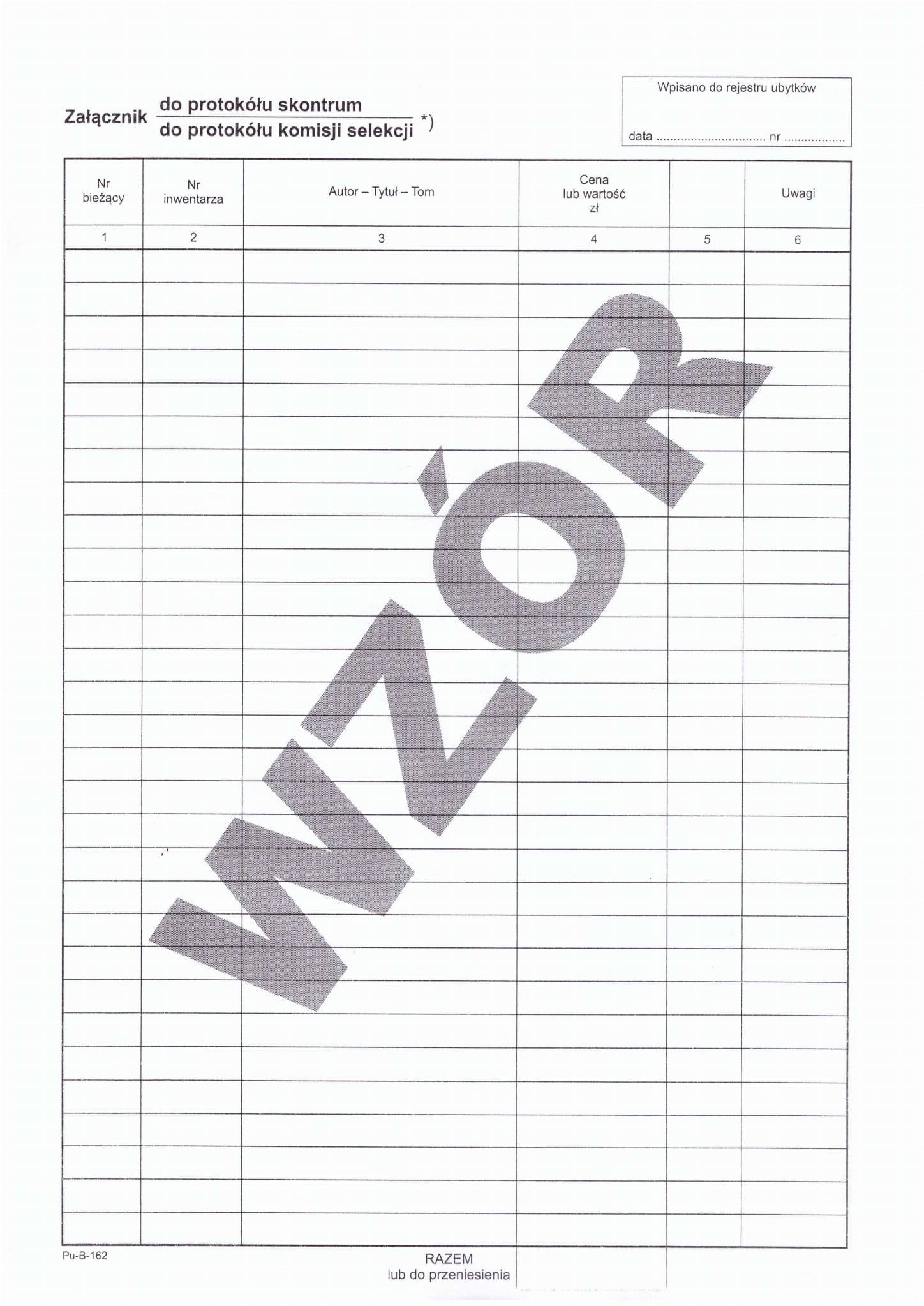 Załącznik do protokołu skontrum PU-B-162