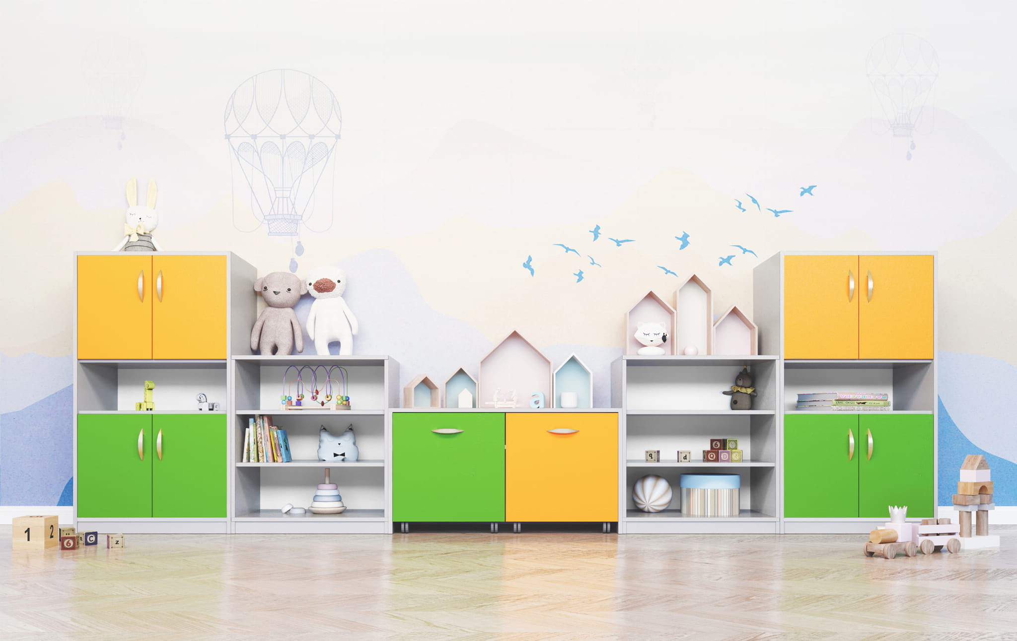 Kolorystyka zestawu : korpus szary / kolory frontów jak na zdjęciu: zielony plus żółty